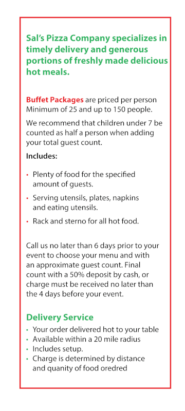 At Sal’s Pizza Place, we love that you choose us to be part of your special moments with our party catering option!